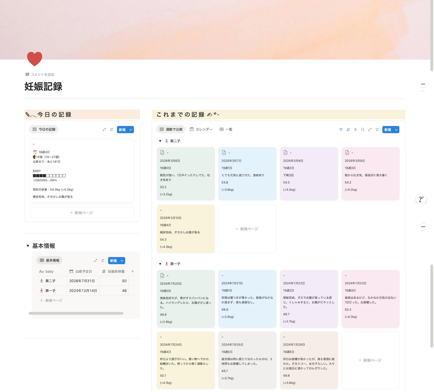 Notion/妊娠記録テンプレートの使い方をまとめました。